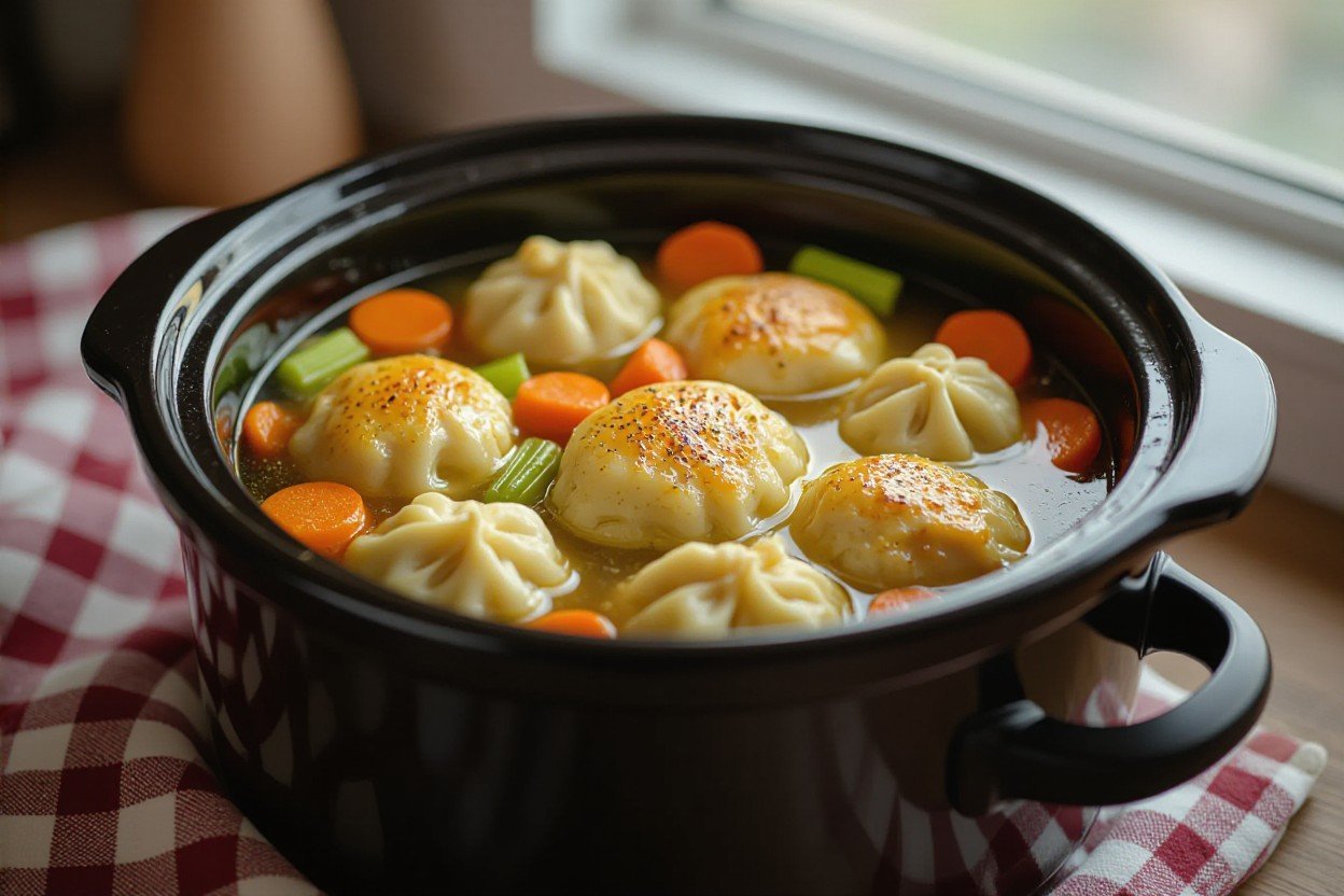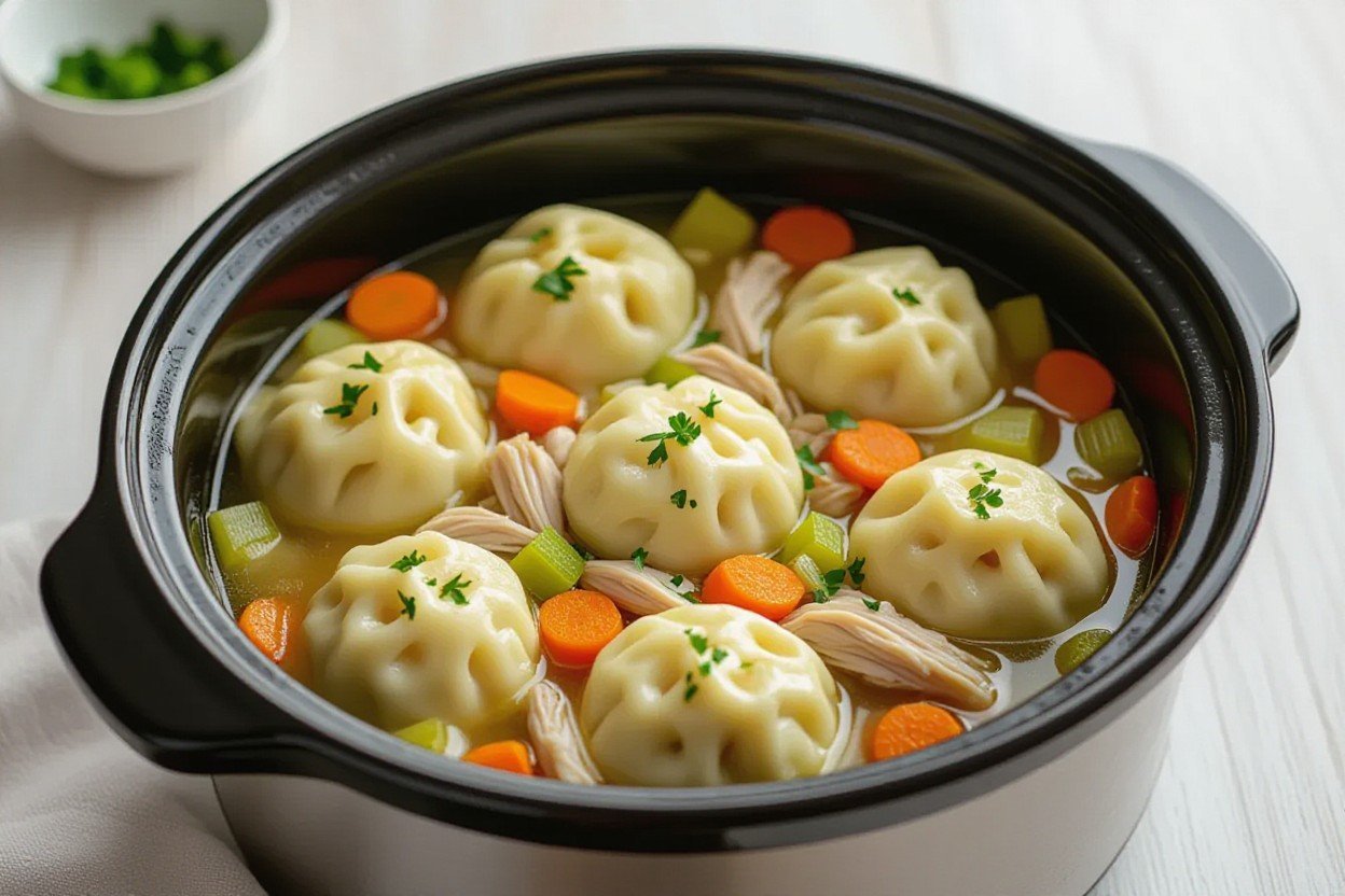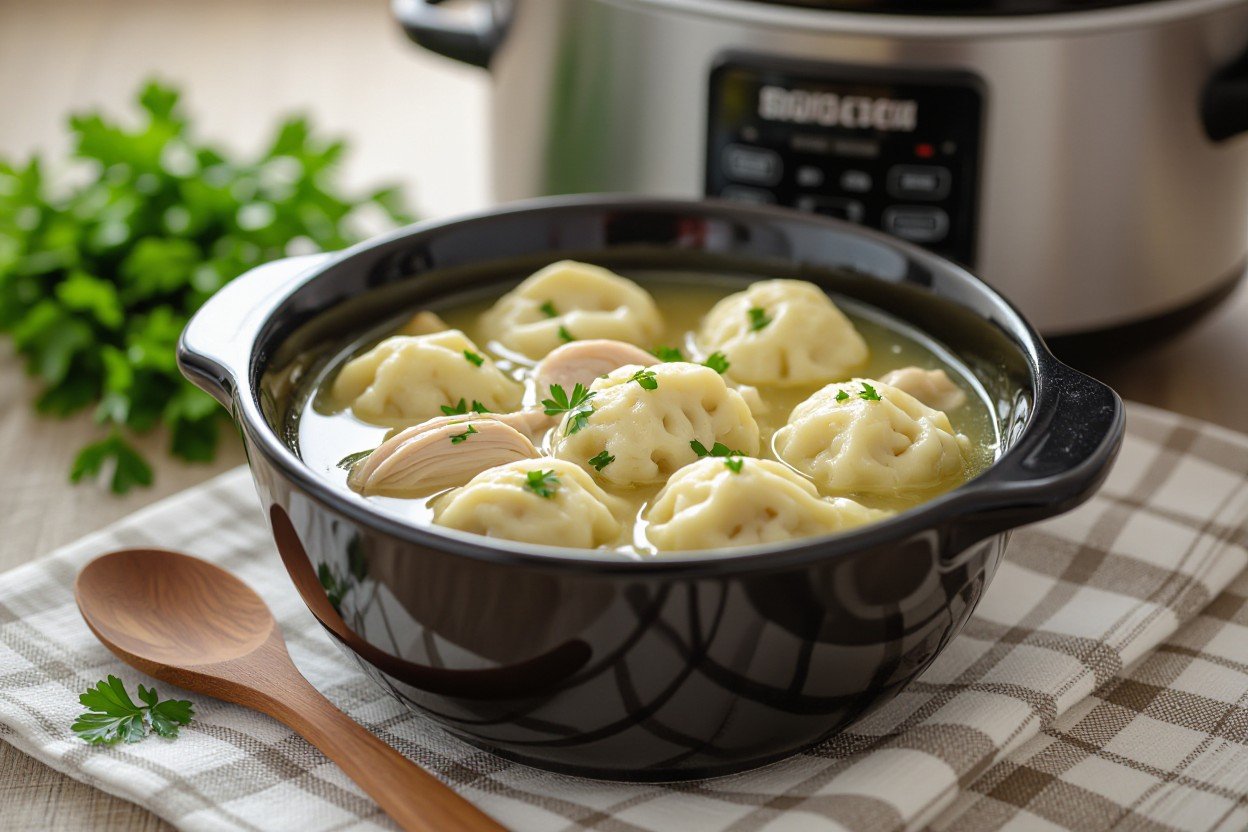 - Using a slow cooker creates tender, flavorful chicken while the dumplings cook perfectly in the rich broth during the final 30 minutes of cooking time