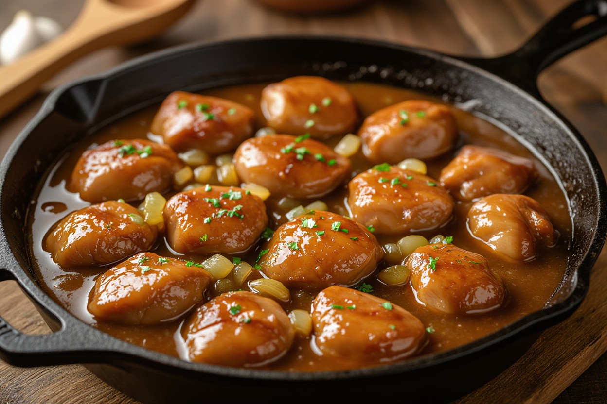 You’ll want to serve your chicken gizzards and gravy in shallow bowls or rimmed plates that can contain the rich sauce without spillage. A bed of fluffy white rice, creamy mashed potatoes, or buttered egg noodles provides the perfect foundation for soaking up every drop of gravy. Garnish your dish with a sprinkle of fresh chopped parsley or green onions to add a pop of color and a subtle fresh note that cuts through the richness. For a more rustic presentation, you can serve the gizzards family-style in a cast iron skillet or vintage serving dish, allowing diners to help themselves.