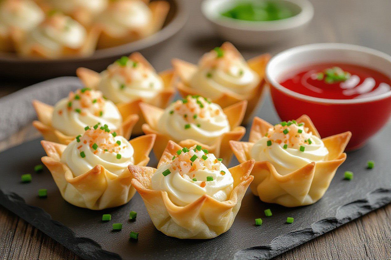 Over 70% of guests say they judge a party by the appetizers first, so these little cups are basically your reputation in bite-size form. You’ve got crisp, golden wonton edges that shatter just a bit when you bite in, then that creamy, savory crab filling that tastes like something you ordered at a fancy fusion restaurant, not something you whipped up in under 30 minutes. People see them on the tray, all neatly portioned with those curled-up corners and a sprinkle of green onion, and they instantly assume you spent way more time (and money) than you actually did.