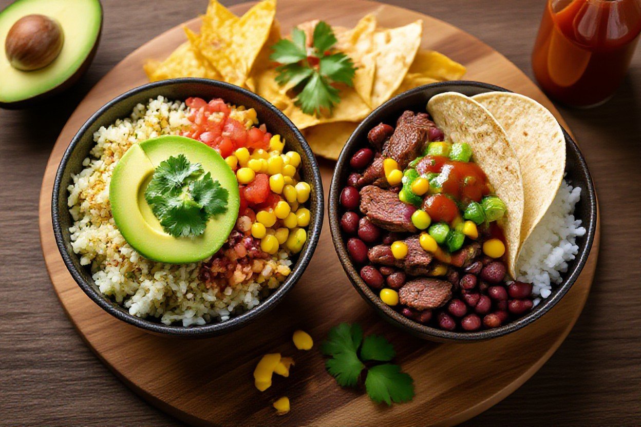 For keeping the bowl under 10 g net carbs, skip beans and tortillas and stick to 1 cup cauliflower rice, 4 oz cooked beef, 2 tbsp guacamole, and 1 oz cheese-this combo typically lands in the 400-600 kcal range with ~30-40 g fat and ~25-35 g protein depending on beef fat content. You can also offer a cilantro-lime crema (full‑fat sour cream thinned with lime and chopped cilantro) in 1-2 tbsp portions so diners control added fats and flavor intensity.