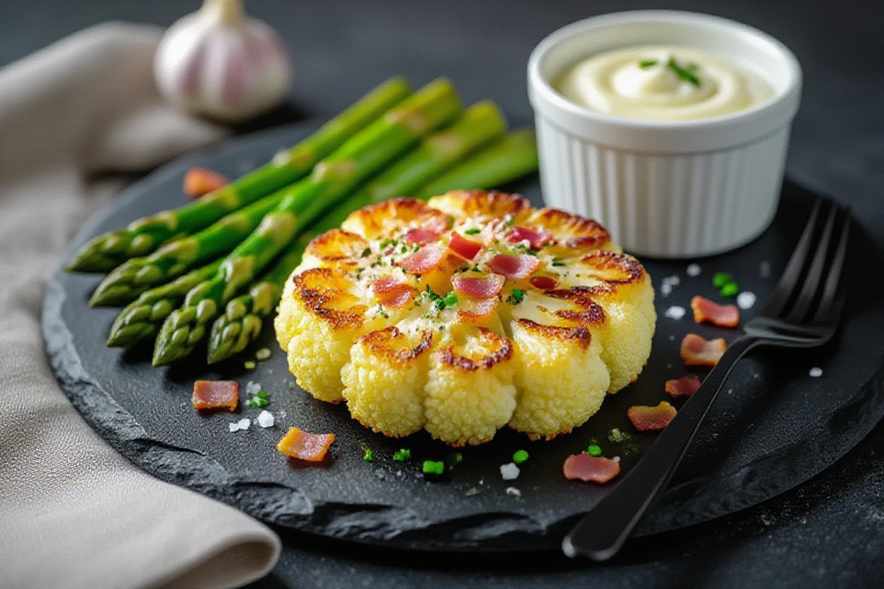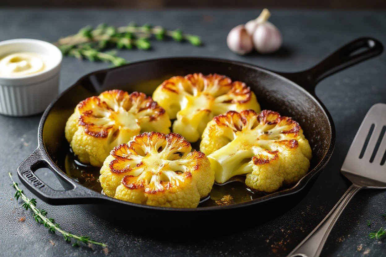 You can build a keto-friendly plate around a cauliflower steak by keeping the portion and toppings in mind: a single large steak (about 150 g) tends to contain roughly 4-5 g net carbs, so pairing it with high-fat additions lets you hit a 70-75% fat macro target while keeping total carbs under common keto thresholds (usually 20-30 g net per day). Top with 2 tablespoons of compound butter or a tablespoon of olive oil and a sprinkle of grated Parmesan to add 200+ kcal and 20-25 g of fat with imperatively zero carbs.