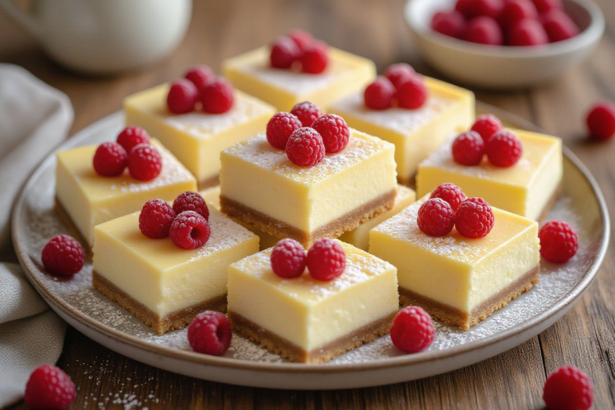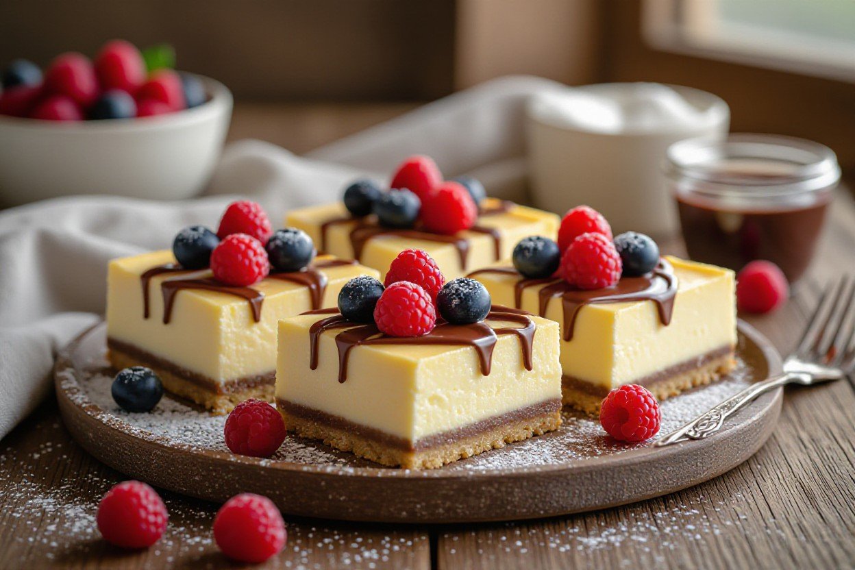 You get that ultra-smooth, bakery-style texture by stacking a few smart ingredients together, not by loading on more sweetener. Full-fat cream cheese is your MVP here, and it really does matter that it’s full-fat – the extra fat gives you that dense, rich bite that doesn’t taste “diet” at all. If you let it sit at room temp for 45-60 minutes before mixing, it blends without lumps and you won’t have to overbeat it, which keeps your bars from puffing up and cracking. For a standard 8×8 pan, you usually want at least 16 ounces of cream cheese so every square actually feels like cheesecake, not a flimsy custard.