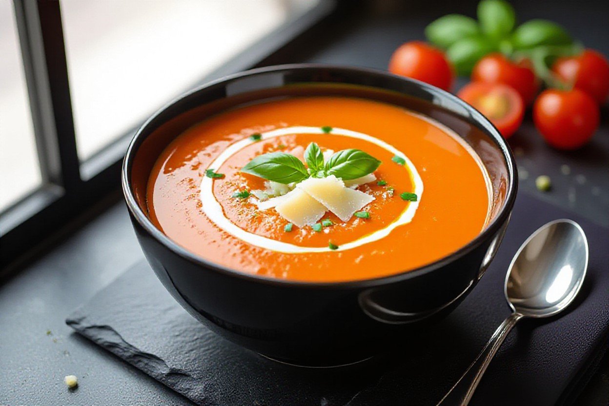 When using fresh tomatoes, blanch in boiling water 60-90 seconds, then shock in ice water to slip skins, or roast at 425°F (220°C) for 18-25 minutes to concentrate sugars and deepen color. If you want ultra-silky texture, plan to strain the soup through a fine-mesh sieve after blending; otherwise an immersion blender yields rustic body and keeps prep minimal.
