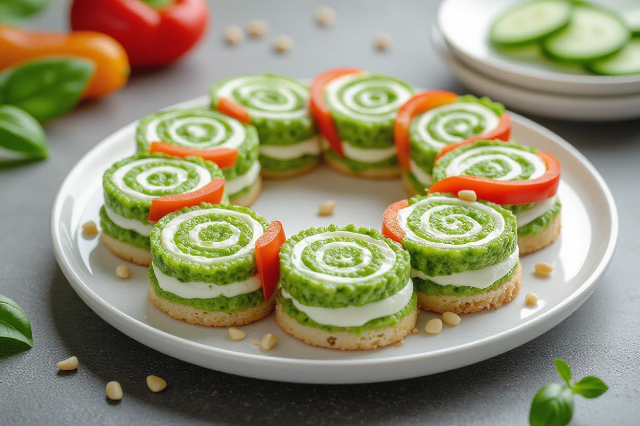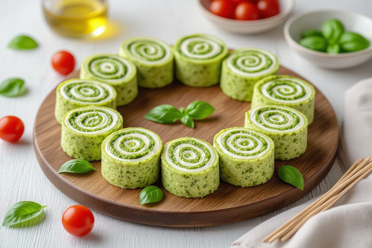 You know that moment when guests walk in and beeline straight for the food? Your wreath can totally be that magnet if you set it up right. I like to place the pesto pinwheel wreath on a large wooden board, then tuck little ramekins of extras around it – think marinated olives, sun-dried tomatoes, and a small pile of shaved Parmesan. If you’re serving 8 to 10 people, one wreath usually works, but for anything over 12, just make two and stack the boards at slightly different angles so it looks intentional and kind of restaurant-y.